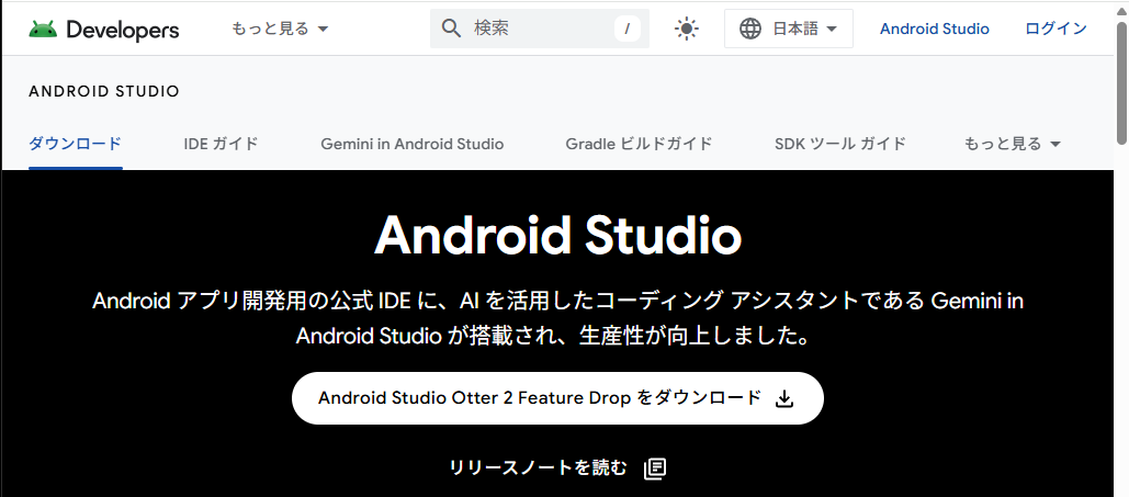 「Android Studio Otter 2 Feature Drop | 2025.2.2」の開発環境を構築します。