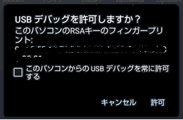 - パソコンとスマホをUSBケーブルで繋ぎます(「USBデバッグを許可しますか?」と出たら「OK」)。