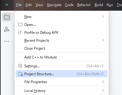 - File メニューから「Project Structure…」を選択します。