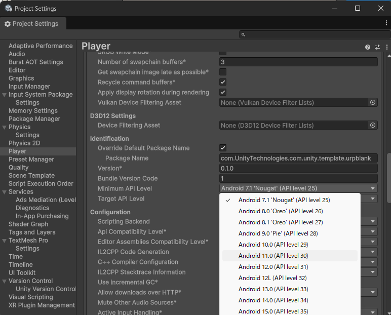 - これを Android 11.0 (API level 30) に変更します。