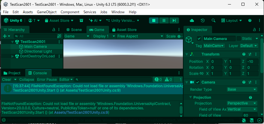 TestScan2601Unity.Start () (at Assets/TestScan2601Unity.cs:9)