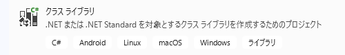 フレームワーク「.NET Standard2.1」を選択できるC#クラスライブラリを必ず選択します。