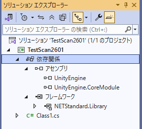 参照するためには、Visual Studio 2022のソリューションエクスプローラーの依存関係を右クリックし、「プロジェクト参照の追加」を選択して、置かれたUnityEngine.DLLとUnityEngine.CoreModule.dllを選択します。