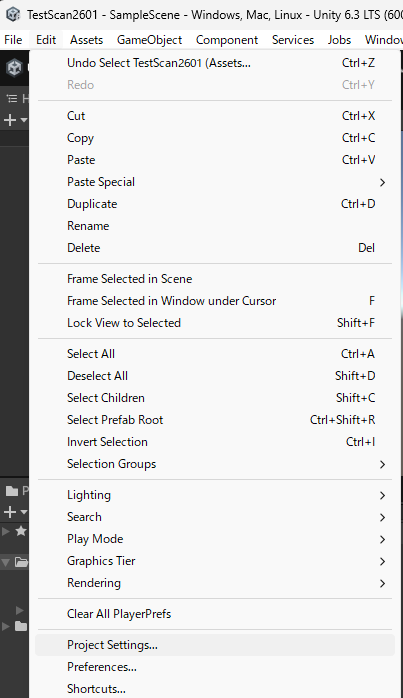 「Edit」→「Project Setting」を選択します。