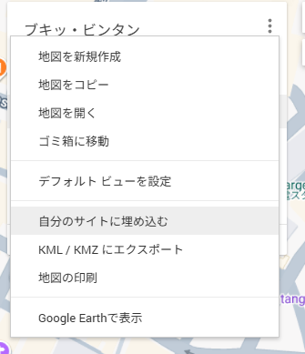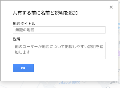 - 「共有」をクリックすると次の画面が表示され、「地図タイトル」に「ブキッ・ビンタン」を設定して、「OK」ボタンを押します。