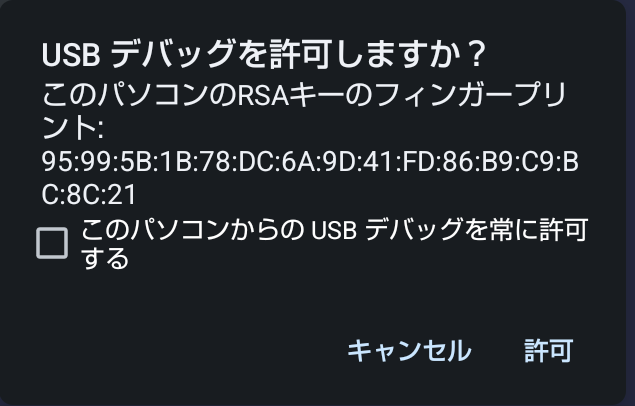 - When the “Allow USB debugging?” dialog appears on your phone, check the box for “Always allow from this computer ” and tap OK. Your phone is now ready for deployment.