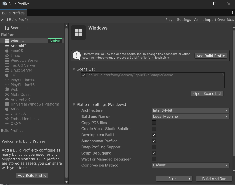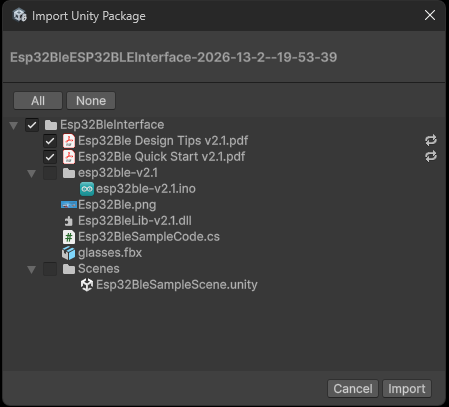 This guide explains how to set up the Esp32Ble package to enable communication between an ESP32 and Unity via Bluetooth Low Energy (BLE).
